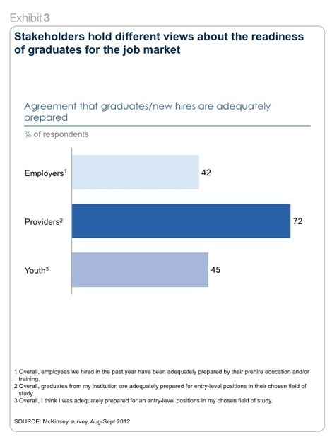 Employers know what we're doing isn't working. Students know it as well. But educational institutions apparently don't, which may be preventing them from making needed changes, as this chart from a McKinsey survey indicates: