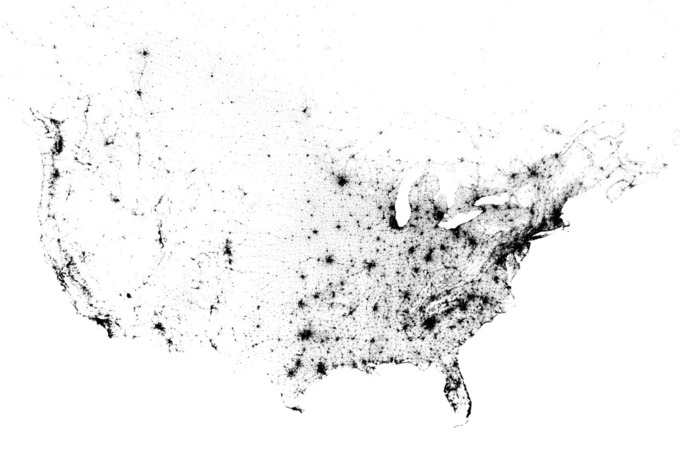 Zoomable. "This is a map of every person counted by the 2010 US and 2011 Canadian censuses. The map has 341,817,095 dots - one for each person."